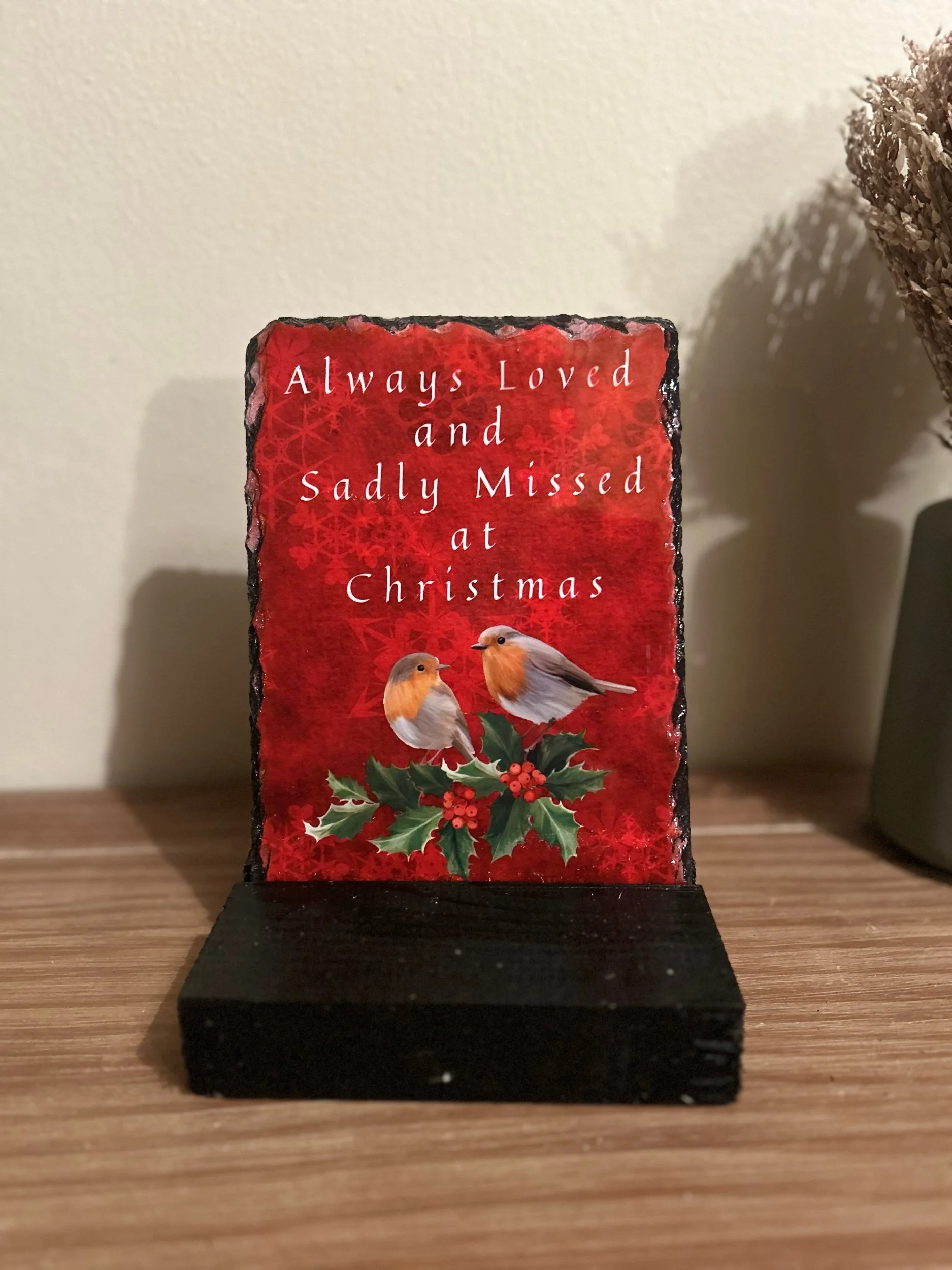 Shop › Robin Always Loved Slate Image 1 of 1 Robin Always Loved Slate £25.00 14x19cm slate with sturdy wooden stand suitable for outdoors Quantity: Add To Cart Added! 14x19cm slate with sturdy wooden stand suitable for outdoors